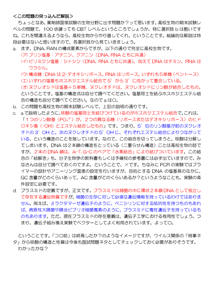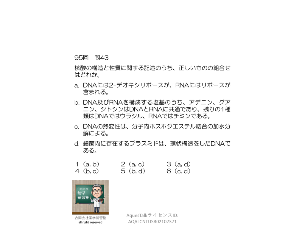 薬剤師国家試験・分子生物学関連問題(旧課程;95回問43)のゆっくりショート解説(YouTubeショート:250613)