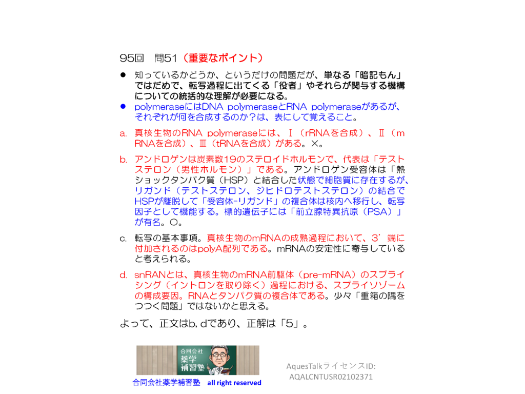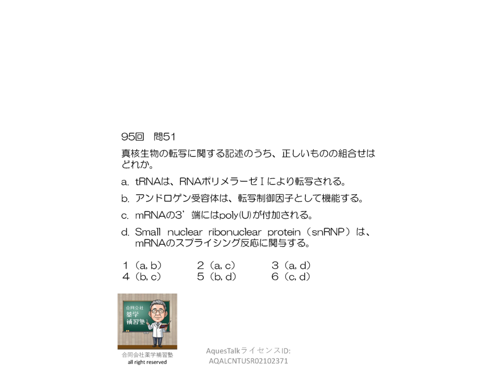 薬剤師国家試験・分子生物学関連問題(旧課程;95回問51)のゆっくりショート解説(YouTubeショート:250629)