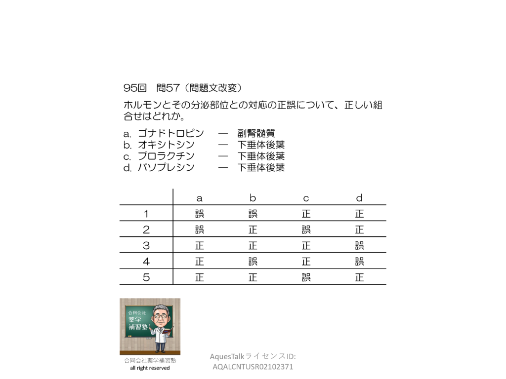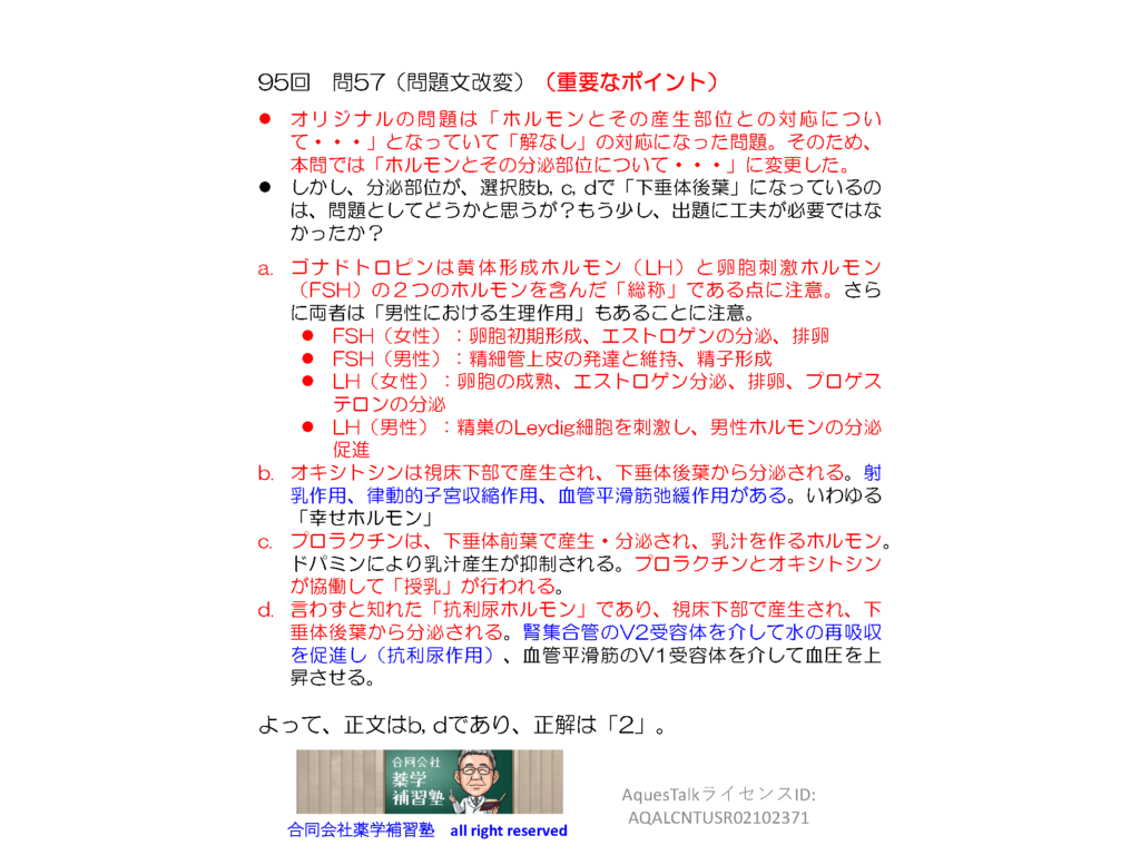 YouTubeショート動画の解説スライドおよび<この問題の突っ込んだ解説>にある解説スライドは、薬学部の現役学生の方、次回の薬剤師国家試験を受験される予定の方はダウンロードしてお使いになっていただいて構いません。なお、大学教育関係者の方、薬剤師国家試験受験予備校関係者の方でスライドのダウンロードご希望の方は、本HPの「お問い合わせホーム」から弊社宛、事前にご連絡ください。また薬物動態学に限らず、CBTや卒業試験、国家試験に向けた「学習法カウンセリング講座」も開講しています(弊社HPのトップページをご覧ください)。「自分の勉強方法が正しいのかどうか今一つ不安だ」というような学生さんは、熟練した指導者による早めのカウンセリングが非常に効果的です。是非一度ご検討ください。