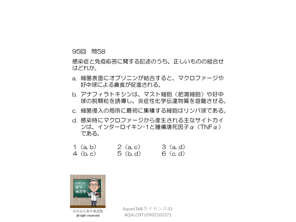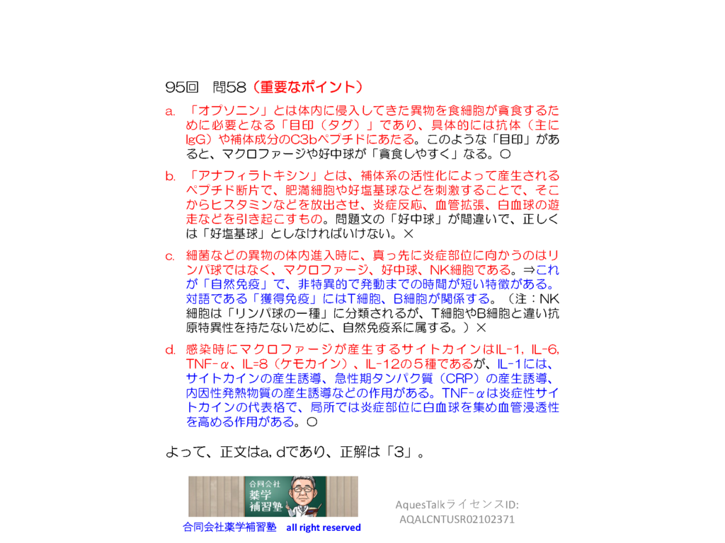 薬剤師国家試験・免疫学関連問題(旧課程;95回問58)のゆっくりショート解説(YouTubeショート:250713)