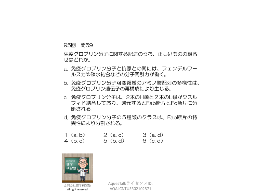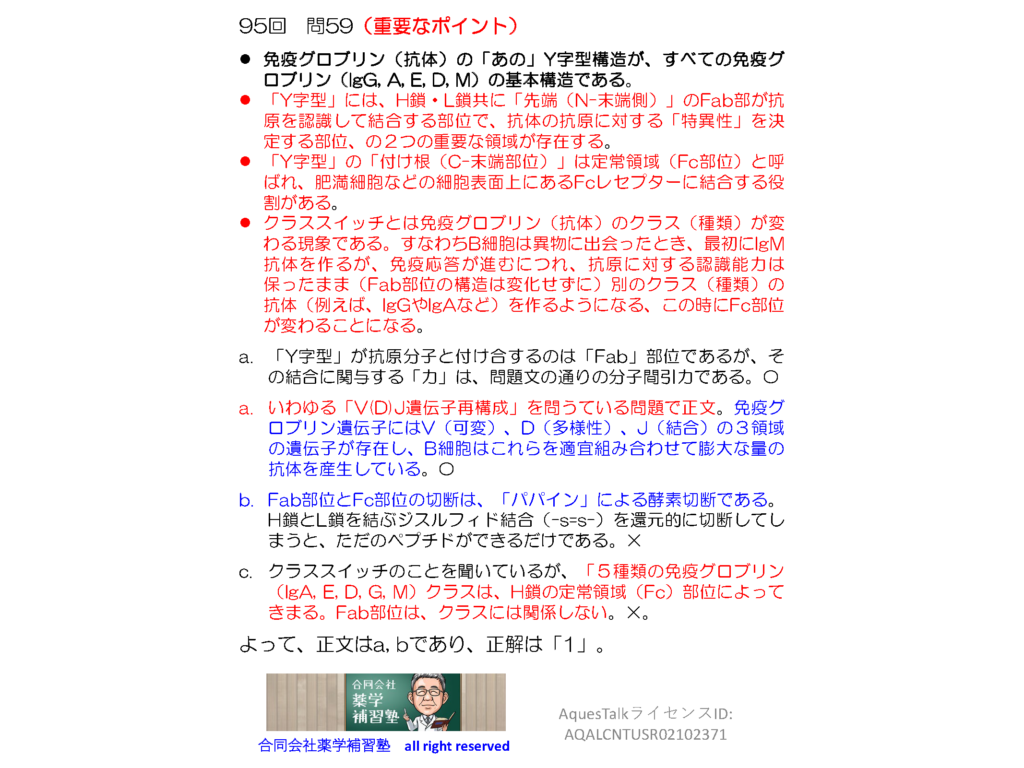 薬剤師国家試験・免疫学関連問題(旧課程;95回問59)のゆっくりショート解説(YouTubeショート:250715)