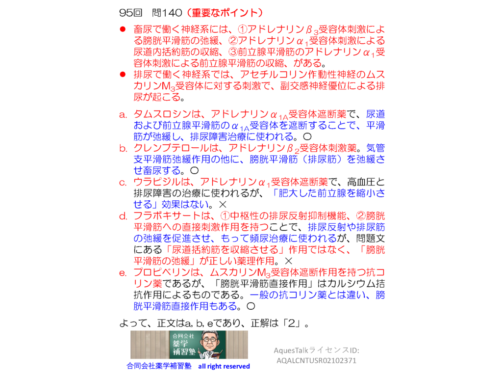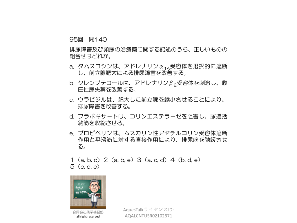 YouTubeショート動画の解説スライドおよび<この問題の突っ込んだ解説>にある解説スライドは、薬学部の現役学生の方、次回の薬剤師国家試験を受験される予定の方はダウンロードしてお使いになっていただいて構いません。なお、大学教育関係者の方、薬剤師国家試験受験予備校関係者の方でスライドのダウンロードご希望の方は、本HPの「お問い合わせホーム」から弊社宛、事前にご連絡ください。また薬物動態学に限らず、CBTや卒業試験、国家試験に向けた「学習法カウンセリング講座」も開講しています(弊社HPのトップページをご覧ください)。「自分の勉強方法が正しいのかどうか今一つ不安だ」というような学生さんは、熟練した指導者による早めのカウンセリングが非常に効果的です。是非一度ご検討ください。