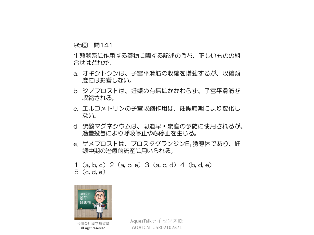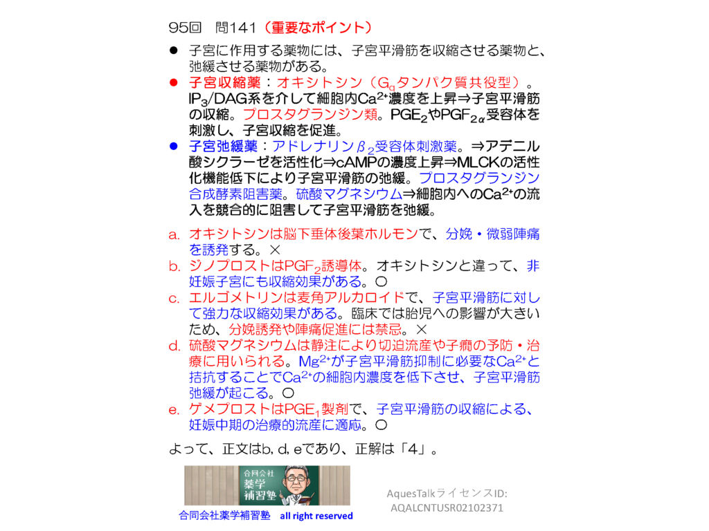 薬剤師国家試験・薬理学関連問題(旧課程;95回問141)のゆっくりショート解説(YouTubeショート:250913)