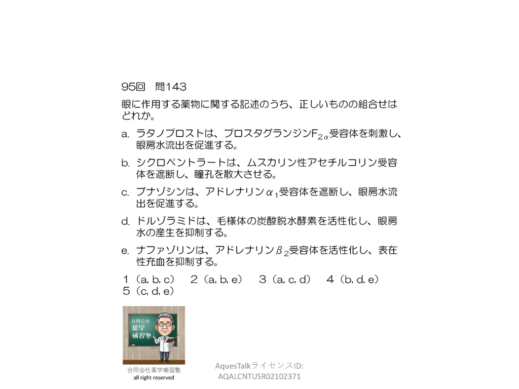 薬剤師国家試験・薬理学関連問題(旧課程;95回問143)のゆっくりショート解説(YouTubeショート:250917)