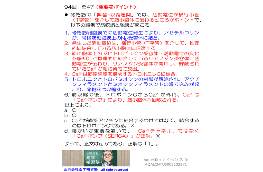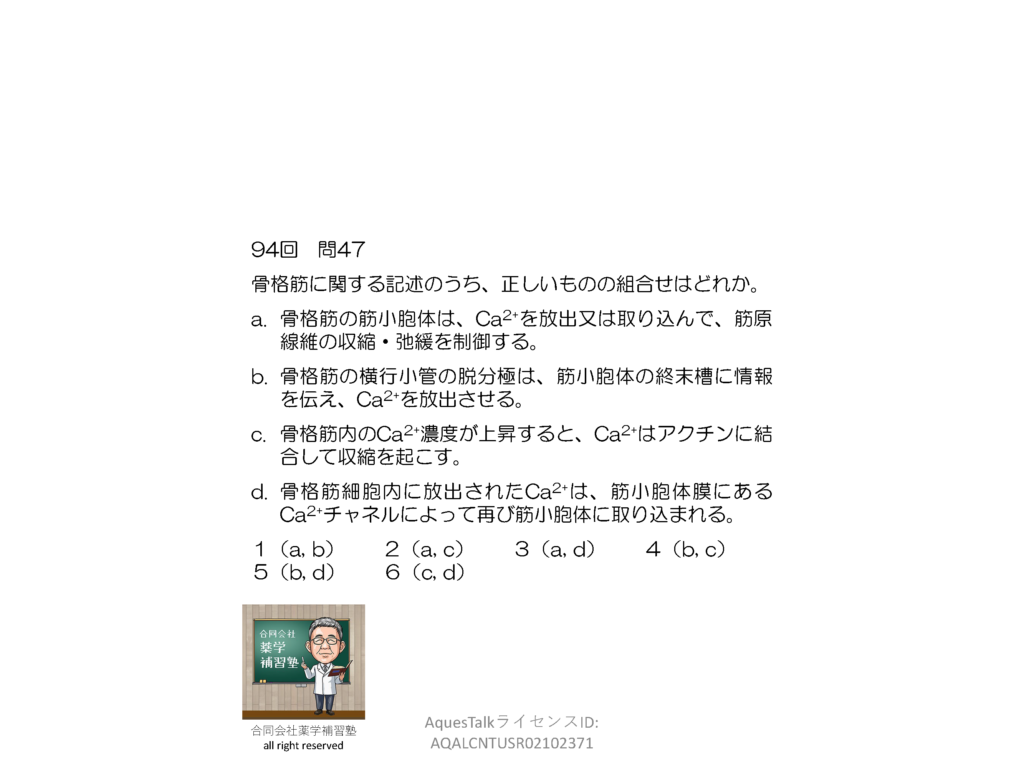 薬剤師国家試験・生理学関連問題(旧課程;94回問47)のゆっくりショート解説(YouTubeショート:251025)