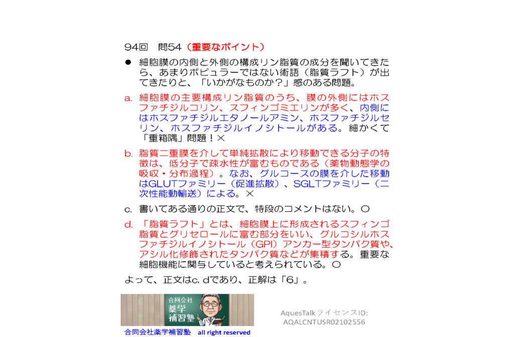 薬剤師国家試験・生物学関連問題(旧課程;94回問54)のゆっくりショート解説(YouTubeショート:251108)