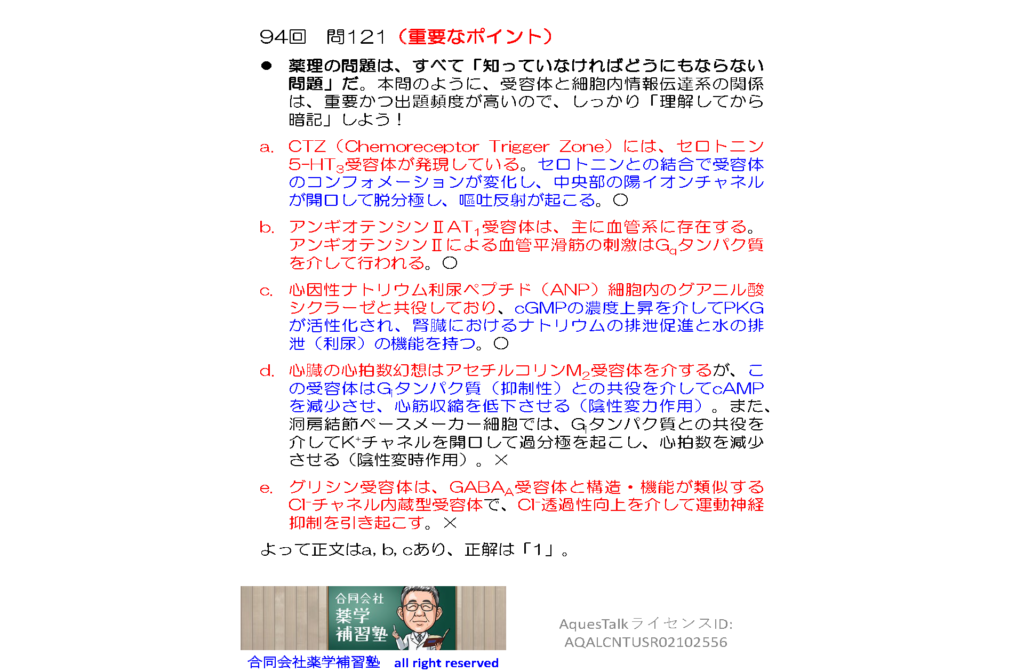 YouTubeショート動画の解説スライドおよび<この問題の突っ込んだ解説>にある解説スライドは、薬学部の現役学生の方、次回の薬剤師国家試験を受験される予定の方はダウンロードしてお使いになっていただいて構いません。なお、大学教育関係者の方、薬剤師国家試験受験予備校関係者の方でスライドのダウンロードご希望の方は、本HPの「お問い合わせホーム」から弊社宛、事前にご連絡ください。また薬物動態学に限らず、CBTや卒業試験、国家試験に向けた「学習法カウンセリング講座」も開講しています(弊社HPのトップページをご覧ください)。「自分の勉強方法が正しいのかどうか今一つ不安だ」というような学生さんは、熟練した指導者による早めのカウンセリングが非常に効果的です。是非一度ご検討ください。