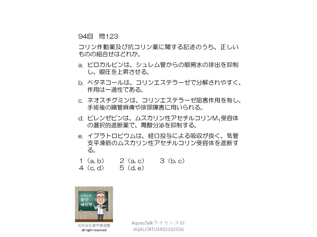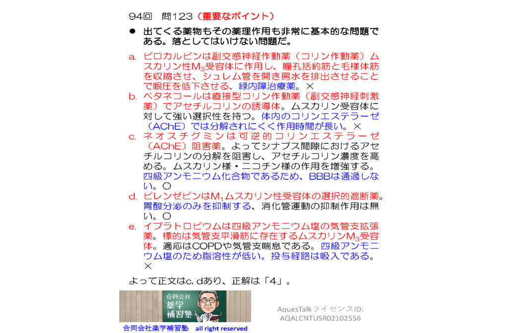 YouTubeショート動画の解説スライドおよび<この問題の突っ込んだ解説>にある解説スライドは、薬学部の現役学生の方、次回の薬剤師国家試験を受験される予定の方はダウンロードしてお使いになっていただいて構いません(著作権は、合同会社薬学補習塾に帰属します)。なお、大学教育関係者の方、薬剤師国家試験受験予備校関係者の方でスライドのダウンロードご希望の方は、本HPの「お問い合わせホーム」から弊社宛、事前にご連絡ください。また薬物動態学に限らず、CBTや卒業試験、国家試験に向けた「学習法カウンセリング講座」も開講しています(弊社HPのトップページをご覧ください)。「自分の勉強方法が正しいのかどうか今一つ不安だ」というような学生さんは、熟練した指導者による早めのカウンセリングが非常に効果的です。是非一度ご検討ください。